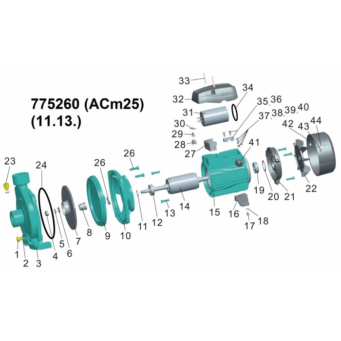 - Рабочее колесо: нержавеющая сталь AISI 304